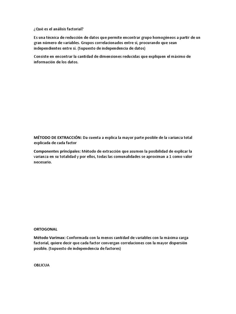 factorial, quiere decir que cada factor convergan correlaciones con la mayor dispersión