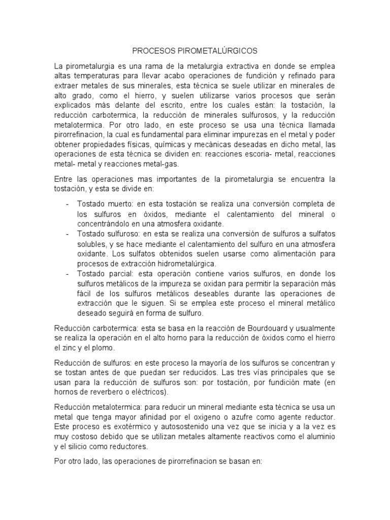 La pirometalurgia es una rama de la metalurgia extractiva en donde se emplea