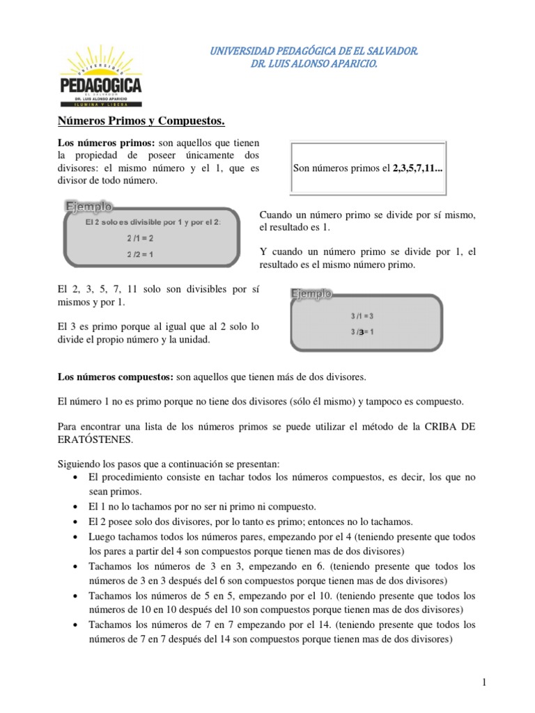 divisores: el mismo número y el 1, que es Son números primos el 2,3,5,7,11...
