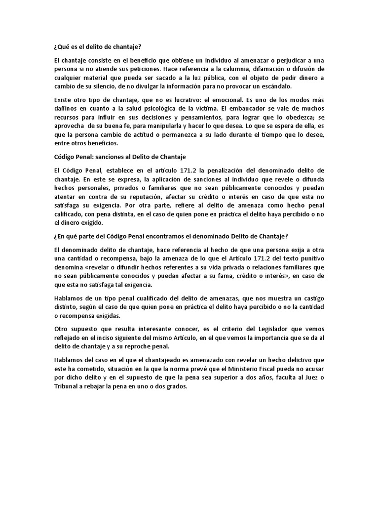 El denominado delito de chantaje, hace referencia al hecho de que una persona exija a otra