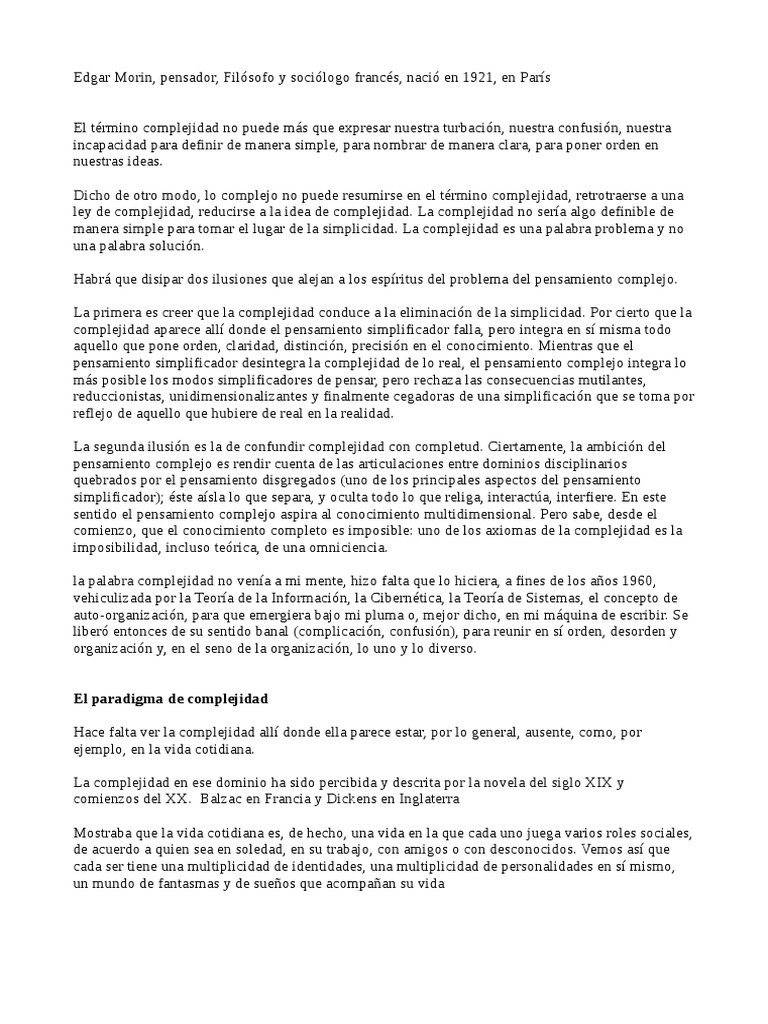 pensamiento complejo es rendir cuenta de las articulaciones entre dominios disciplinarios