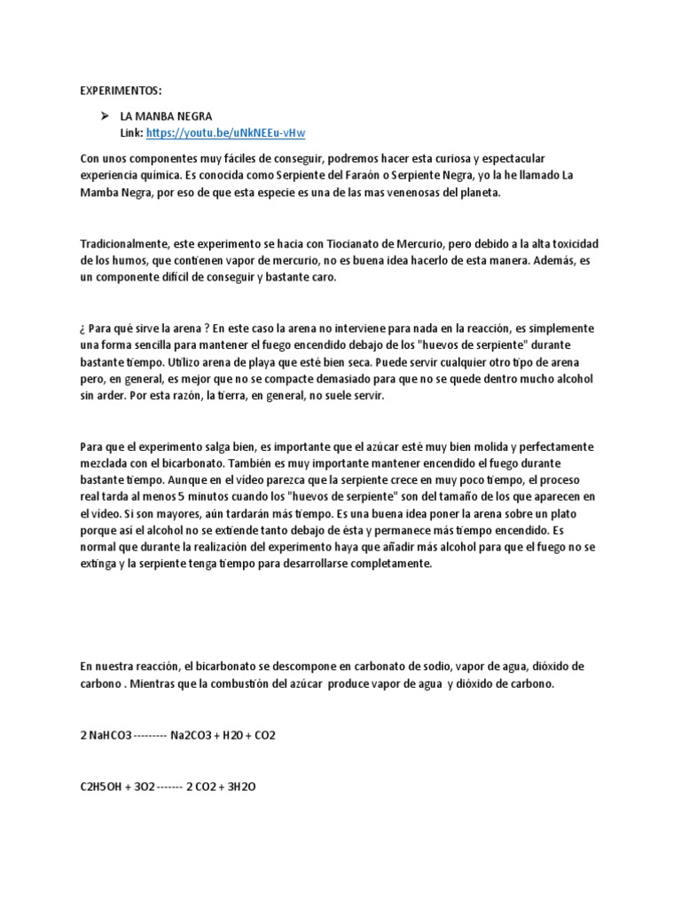 experiencia química. Es conocida como Serpiente del Faraón o Serpiente Negra, yo la he llamado La