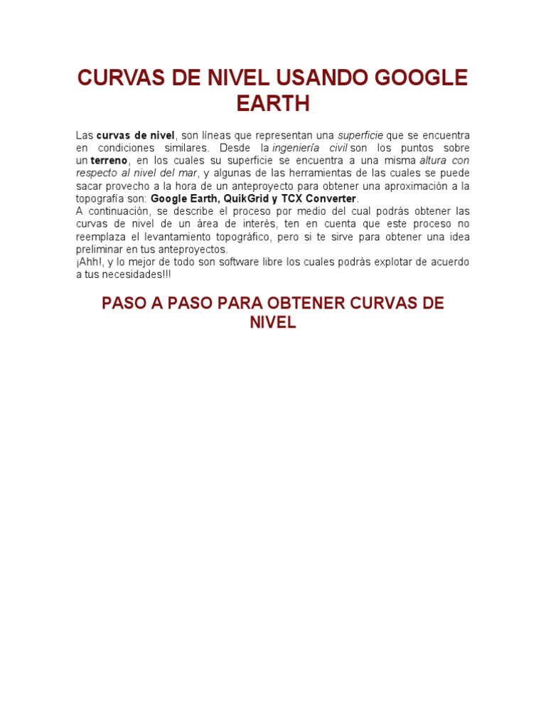 curvas de nivel de un área de interés, ten en cuenta que este proceso no