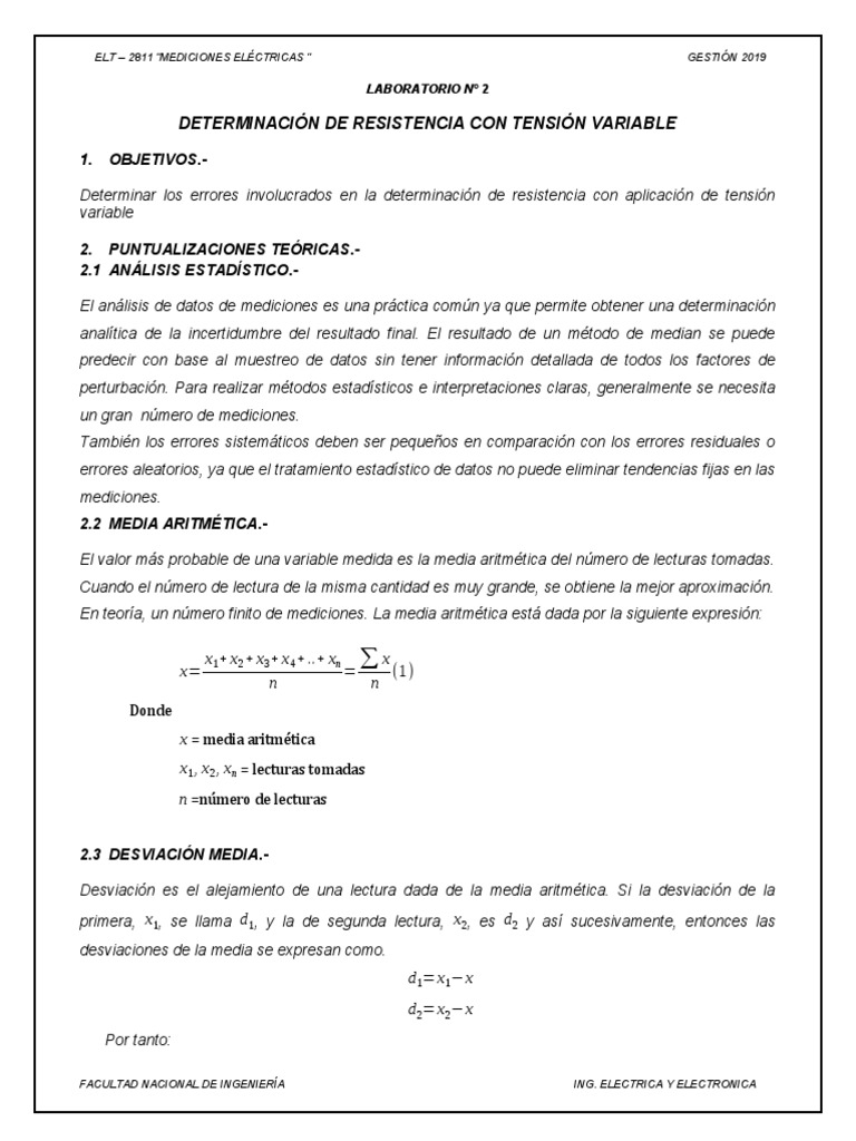 ELT – 2811 “MEDICIONES ELÉCTRICAS “ GESTIÓN 2019