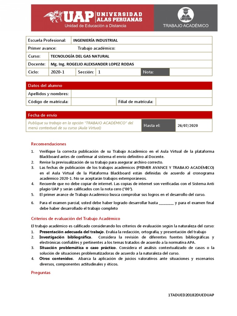 Para la entrega del Trabajo Académico, el nombre del fichero deberá tener la