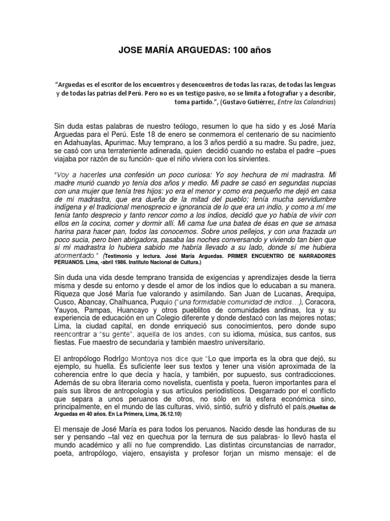 fueron dando. Arguedas según los críticos dedicados a su obra han resaltado su