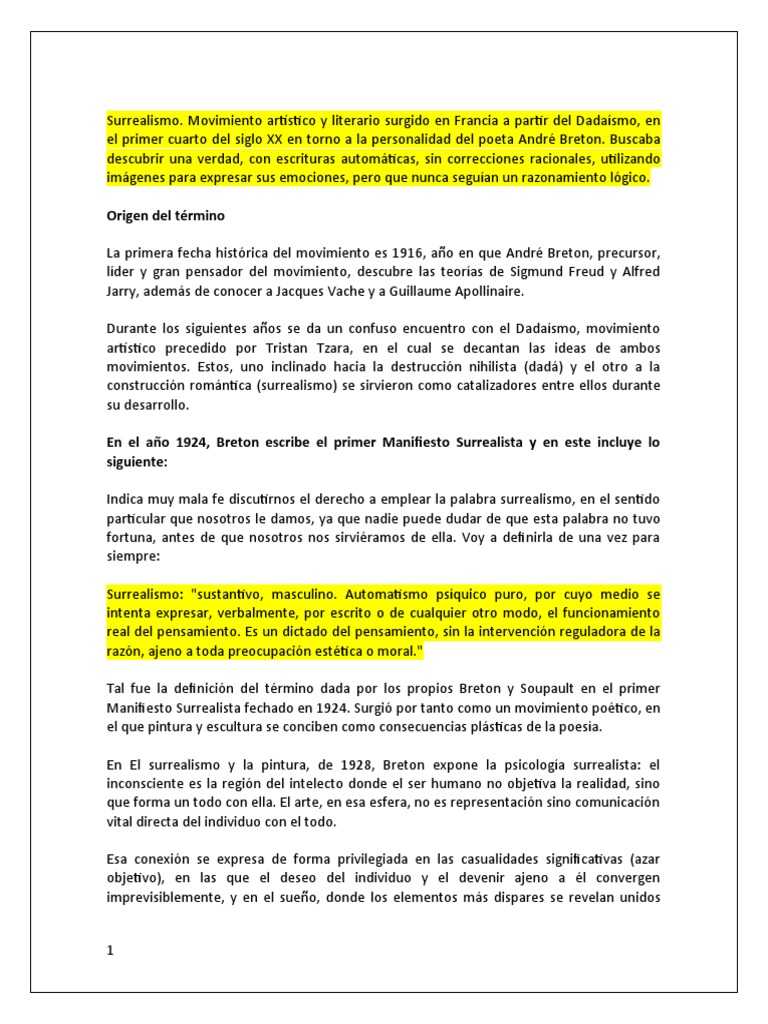 En el año 1924, Breton escribe el primer Manifiesto Surrealista y en este incluye lo