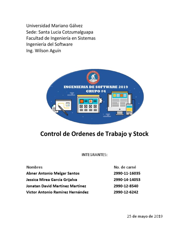 de control de órdenes de trabajo y stock.