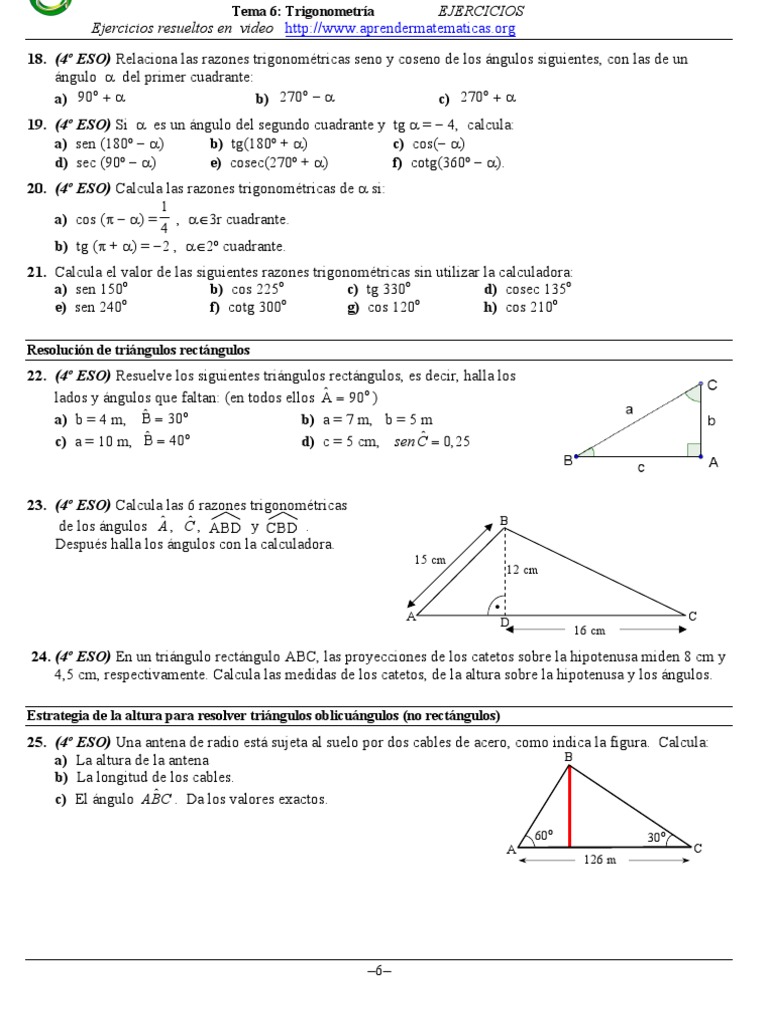 37. Calcula el valor de las siguientes razones trigonométricas sin utilizar la calculadora: