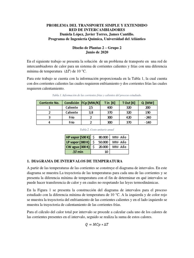 intercambiadores de calor para un sistema de corrientes calientes y frías con una diferencia