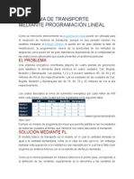 En el siguiente trabajo se presenta la solución de un problema de transporte en una red de