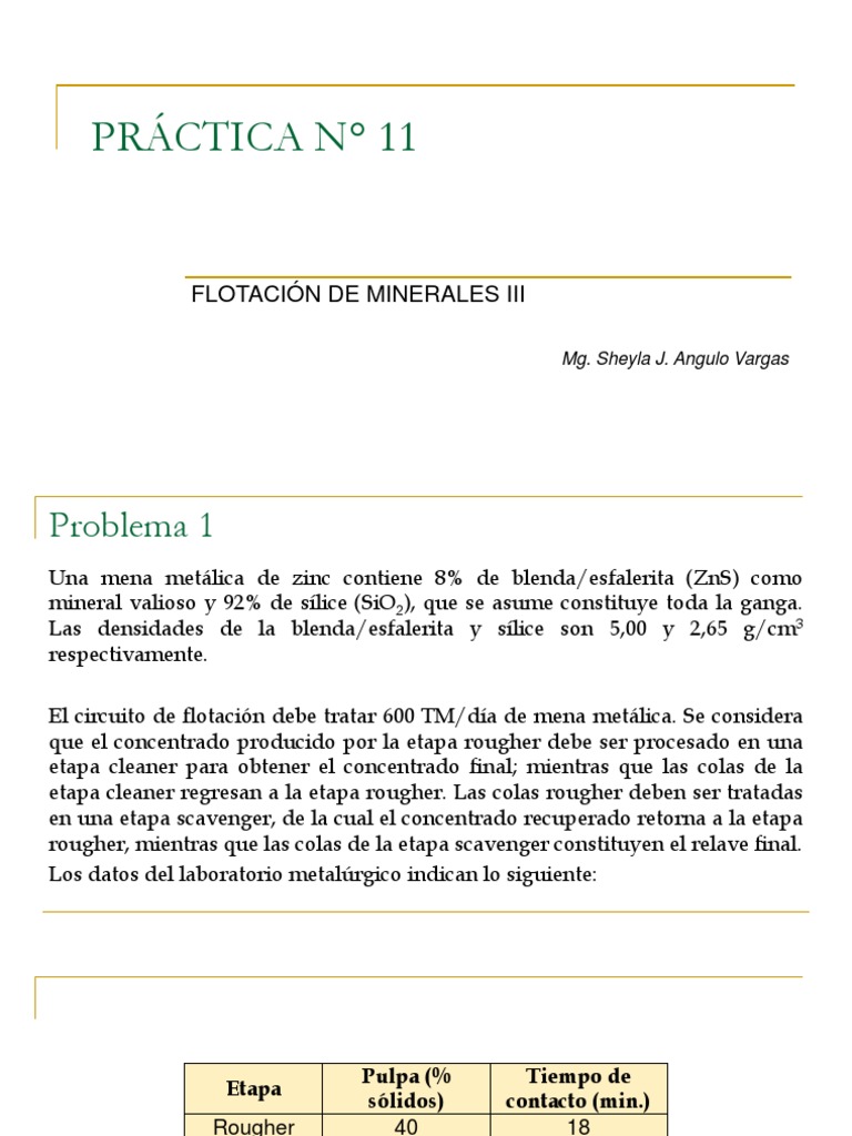 El circuito de flotación debe tratar 800 TM/día de mena metálica. Se considera