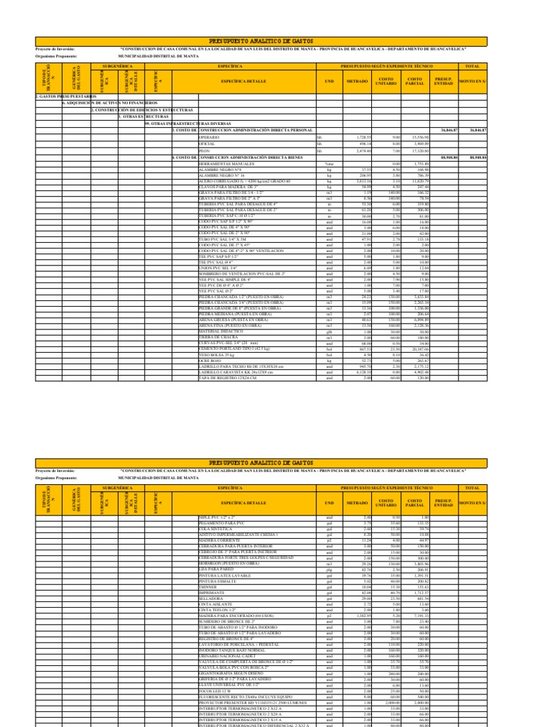Proyecto de Inversión: "CONSTRUCCION DE CASA COMUNAL EN LA LOCALIDAD DE SAN LUIS DEL DISTRITO DE MANTA - PROVINCIA DE HUANCAVELICA - DEPARTAMENTO DE HUANCAVELICA"
