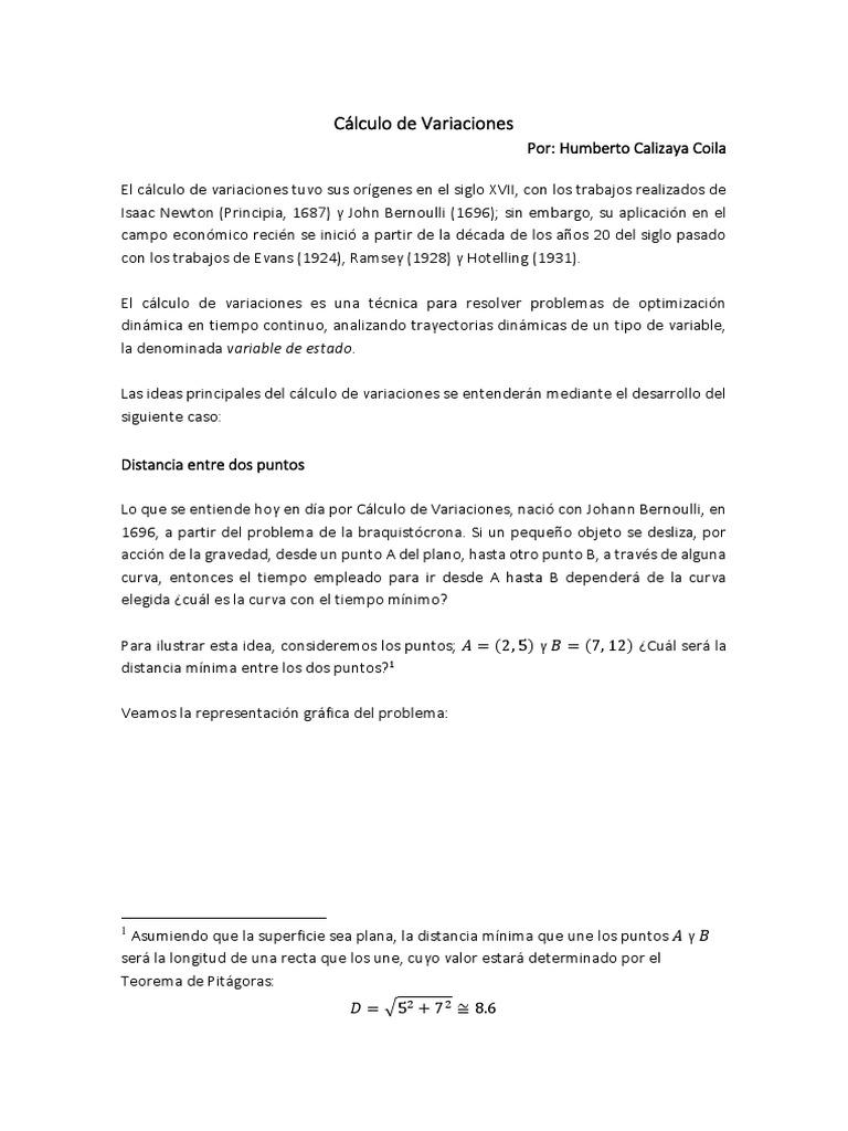Las ideas principales del cálculo de variaciones se entenderán mediante el desarrollo del