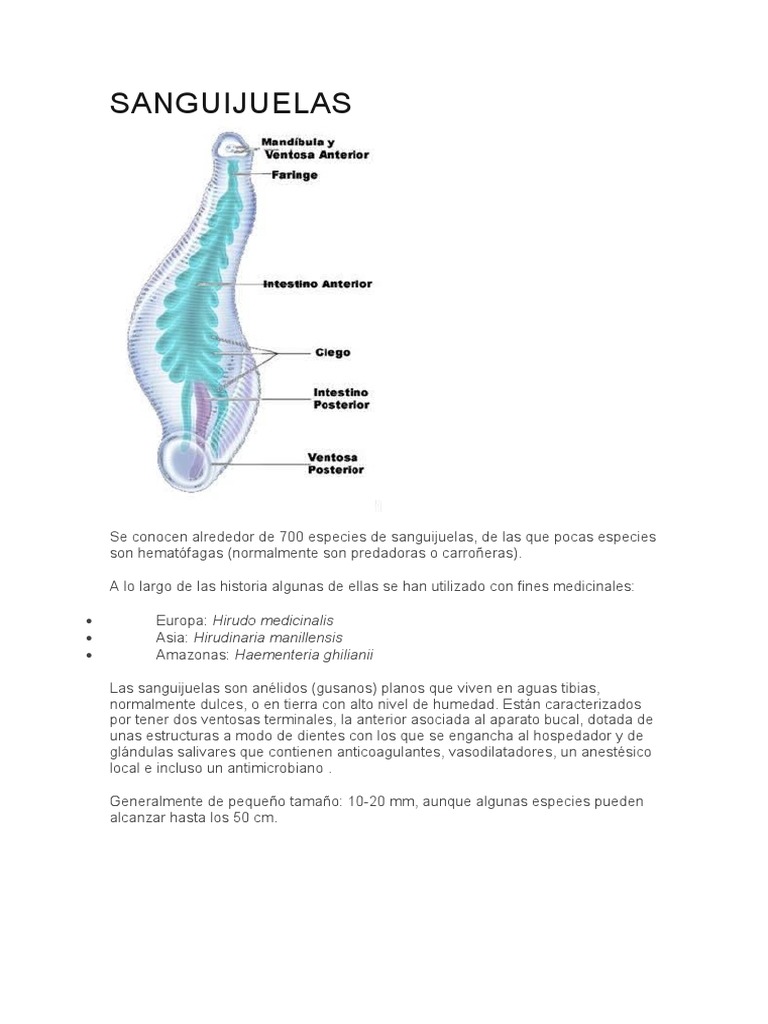 Las sanguijuelas son anélidos (gusanos) planos que viven en aguas tibias,