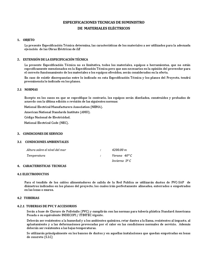 La presente Especificació n Técnica determina, las características de los materiales a ser utilizados para la adecuada