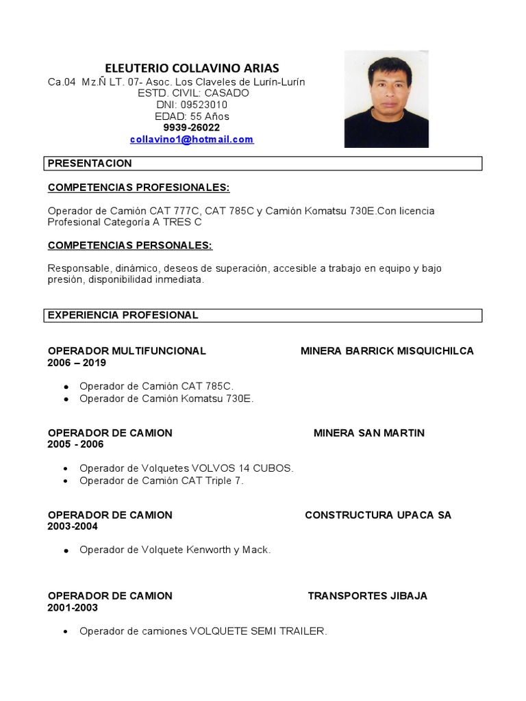 OPERADOR DE CAMION CONSTRUCTURA UPACA SA