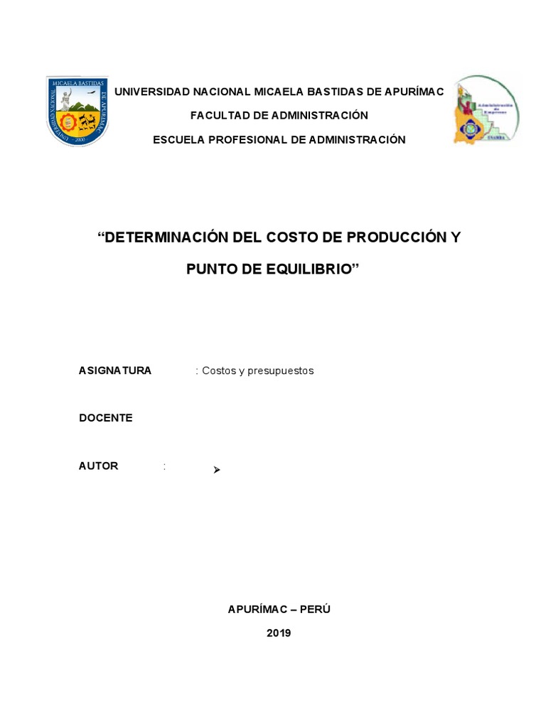 “DETERMINACIÓN DEL COSTO DE PRODUCCIÓN Y