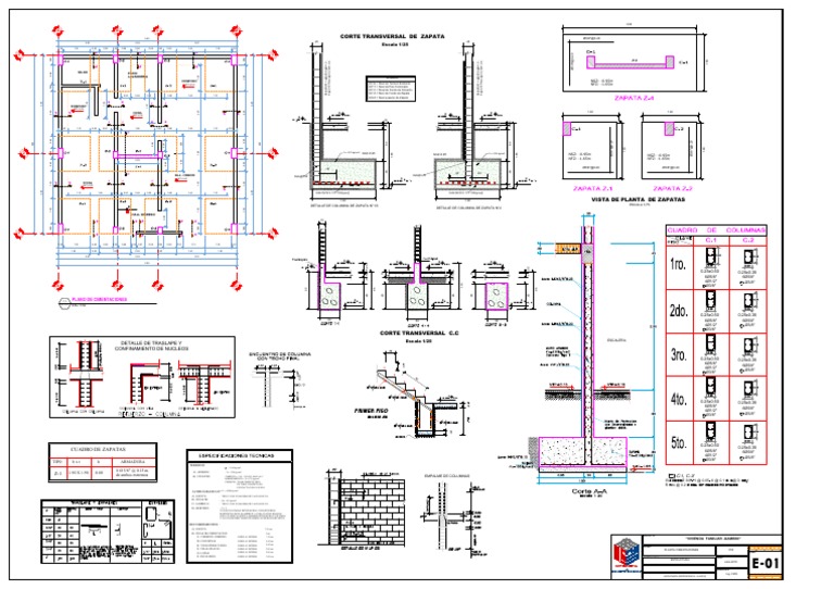 01 DETALLE DE COLUMNA DE ZAPATA N°1/3 ESCALA 1/75
