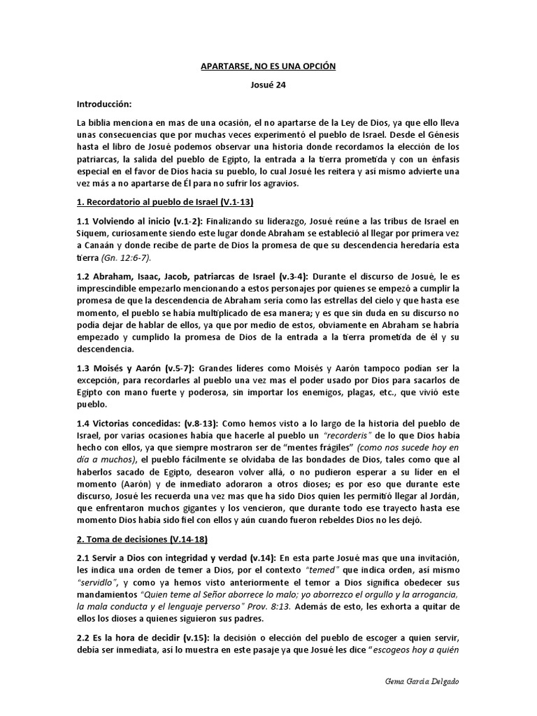 vidas, pareciera repetitivo, sin embargo no lo era, Josué sabía que seguir a Dios realmente