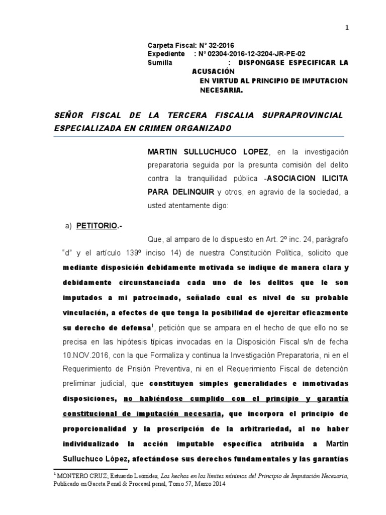 MONTERO CRUZ; Estuardo Leonides, Los hechos en los límites mínimos del Principio de Imputación Necesaria,