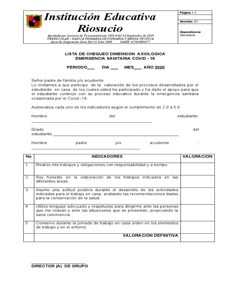 LISTA DE CHEQUEO DIMENSION AXIOLOGICA