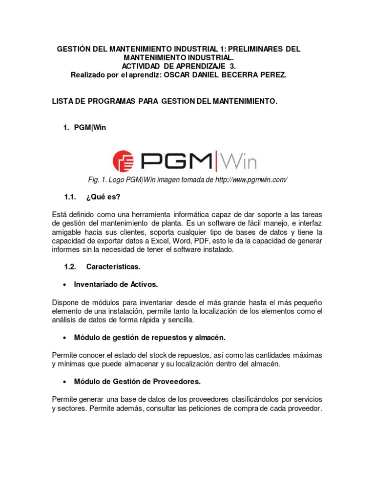 LISTA DE PROGRAMAS PARA GESTION DEL MANTENIMIENTO.