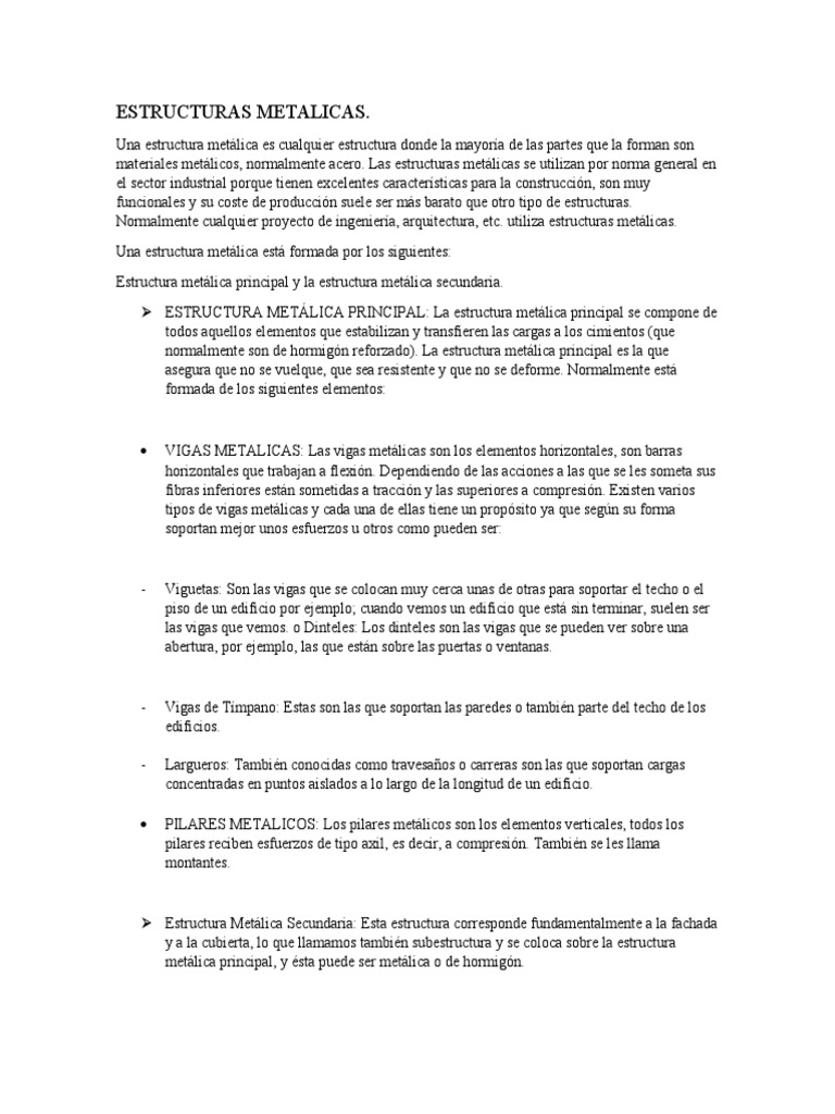 materiales metálicos, normalmente acero. Las estructuras metálicas se utilizan por norma general en