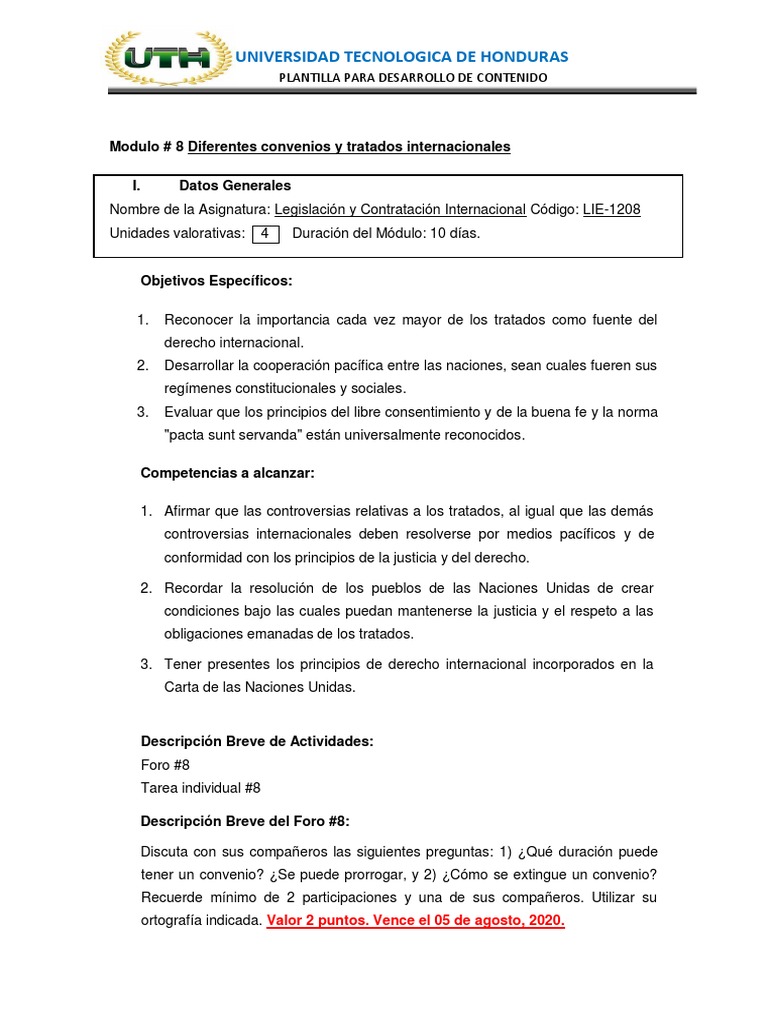 Modulo # 8 Diferentes convenios y tratados internacionales