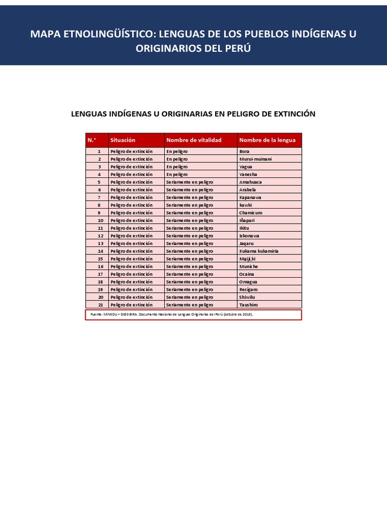 Fuente: MINEDU – DIGEIBIRA. Documento Nacional de Lenguas Originarias del Perú (octubre de 2013).