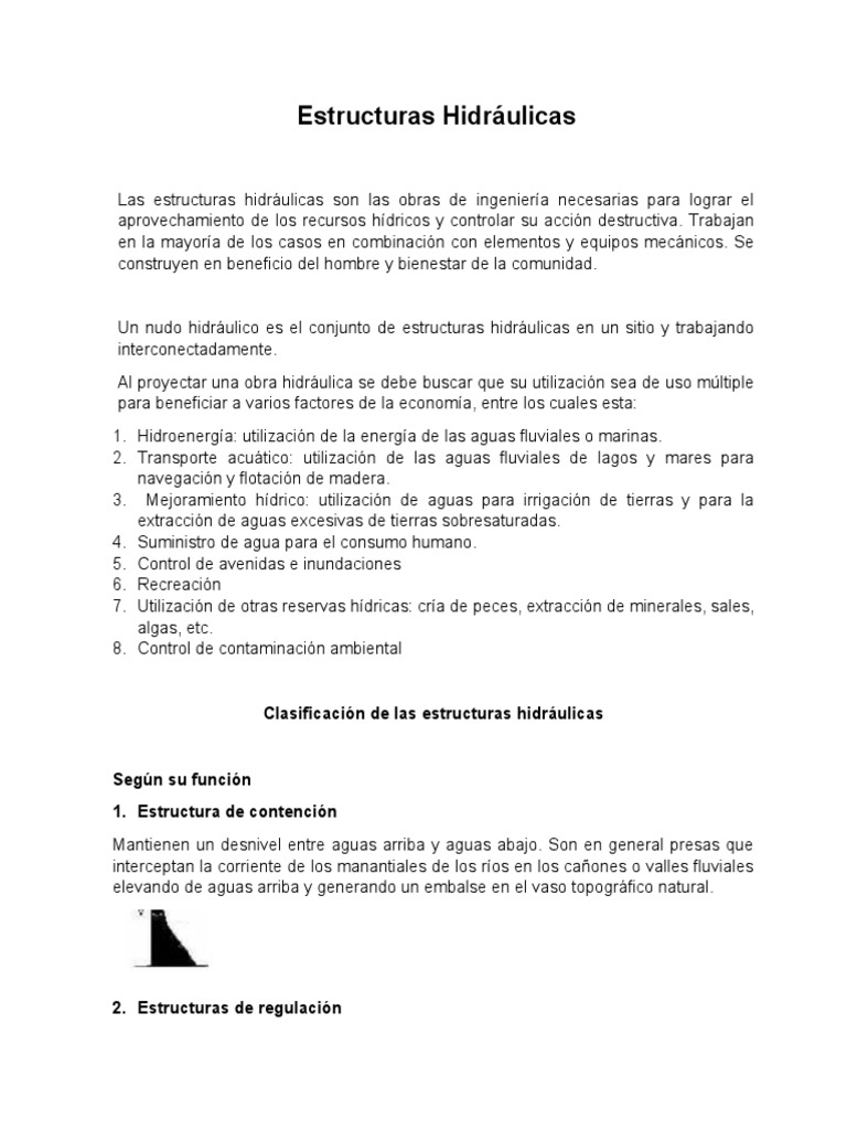 Las estructuras hidráulicas son las obras de ingeniería necesarias para lograr el