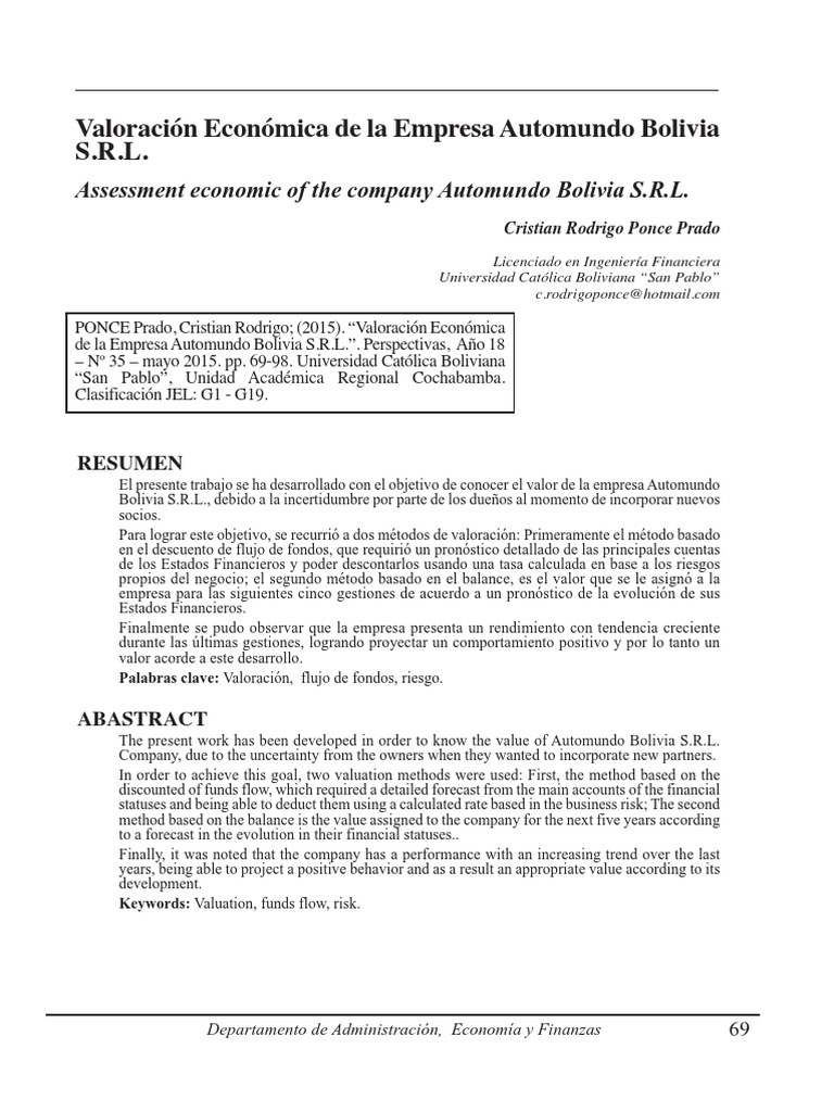 Valoración Económica de la Empresa Automundo Bolivia S.R.L.