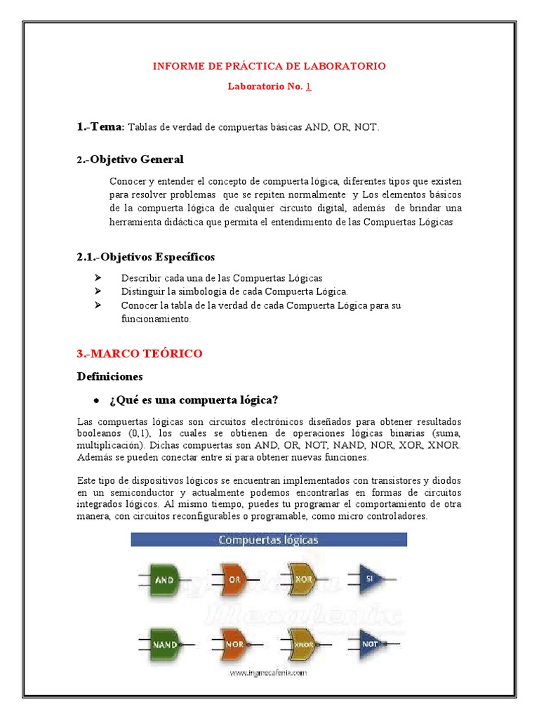 1.-Tema: Tablas de verdad de compuertas básicas AND, OR, NOT.