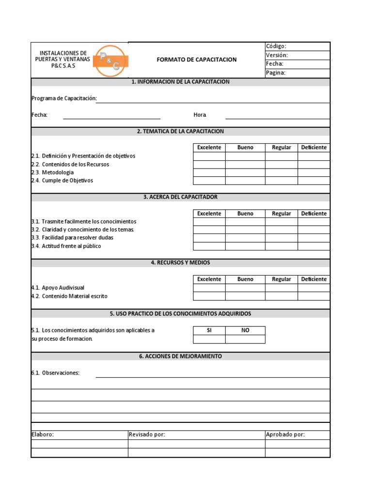 PUERTAS Y VENTANAS FORMATO DE CAPACITACION