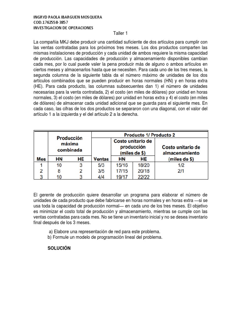 normales, 3) el costo (en miles de dólares) por unidad en horas extra y 4) el costo (en miles