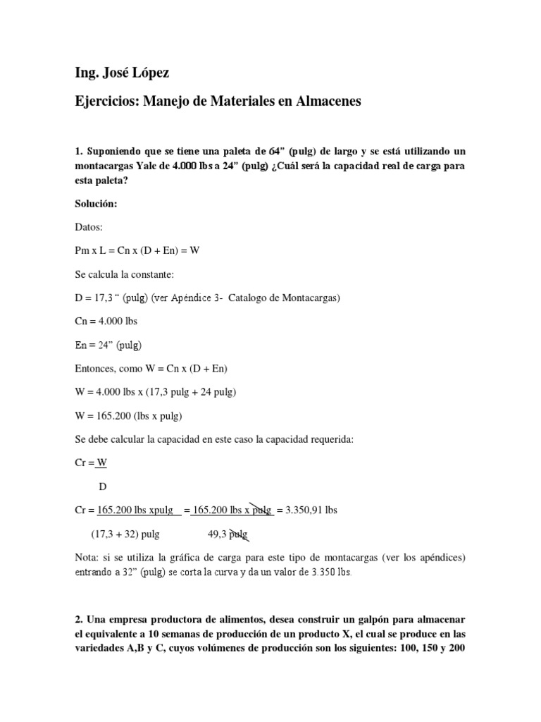 para el producto C. Se dispone de un montacargas “Allis Challmers” de 3000 lbs de