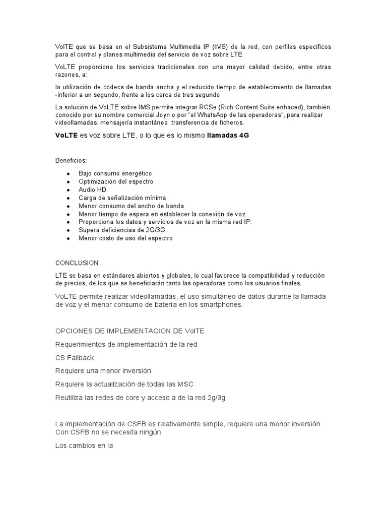 VolTE que se basa en el Subsistema Multimedia IP (IMS) de la red, con perfiles específicos