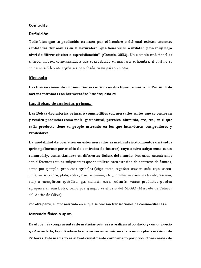 como las divisas y las acciones; esto significa que el precio de un commodity puede depender