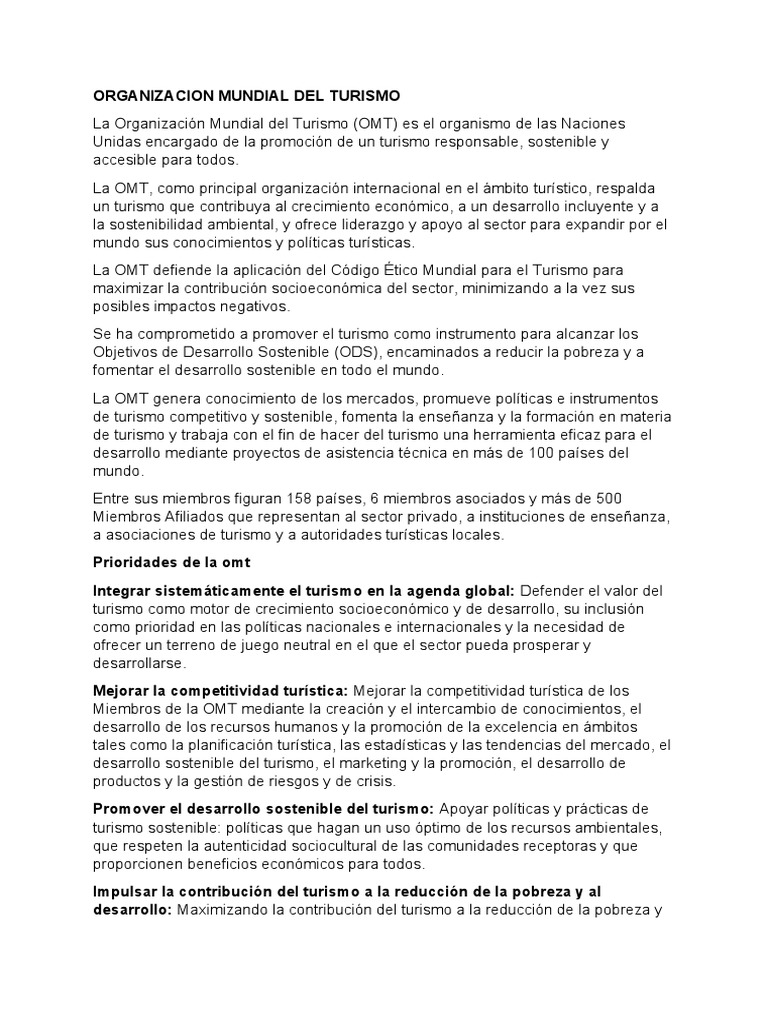 de turismo y trabaja con el fin de hacer del turismo una herramienta eficaz para el