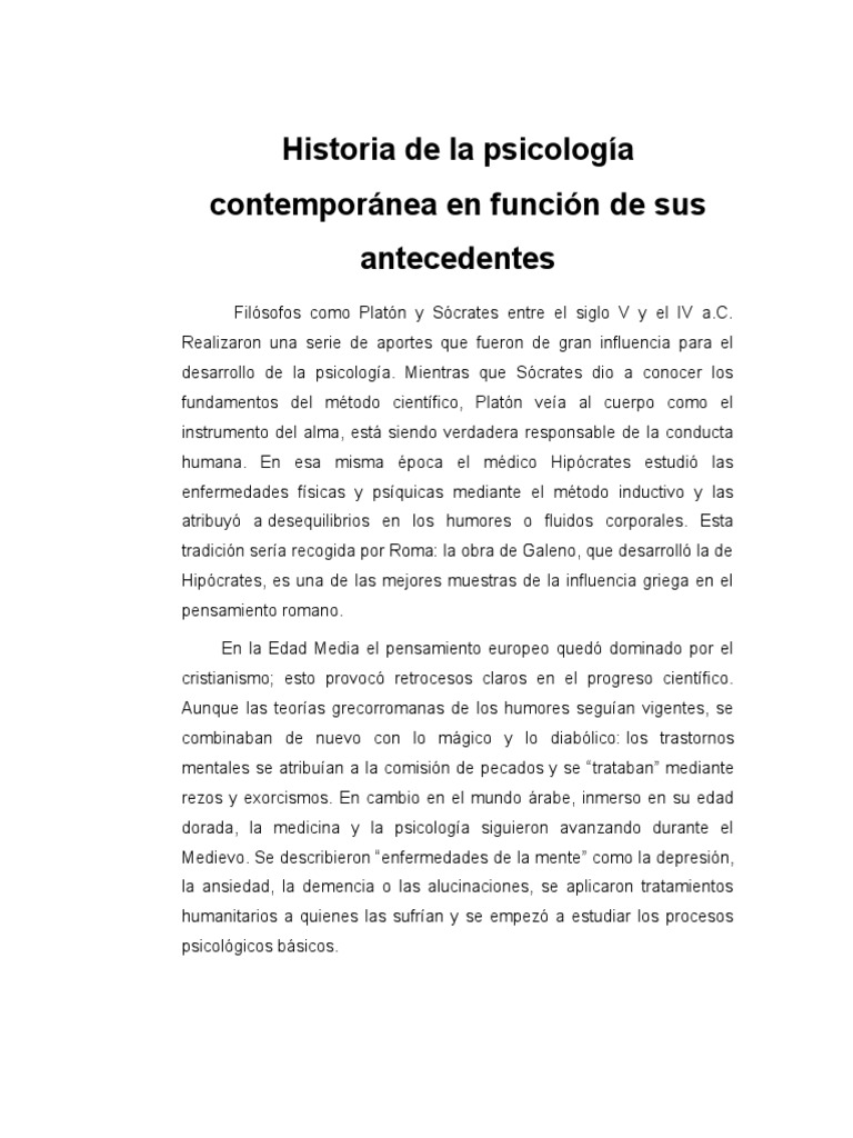 científico. Podemos decir que la historia de la nueva psicología se divide