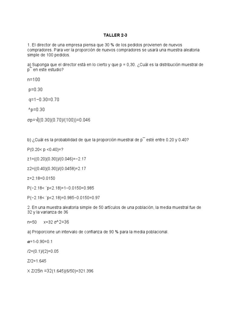 2. En una muestra aleatoria simple de 50 artículos de una población, la media muestral fue de