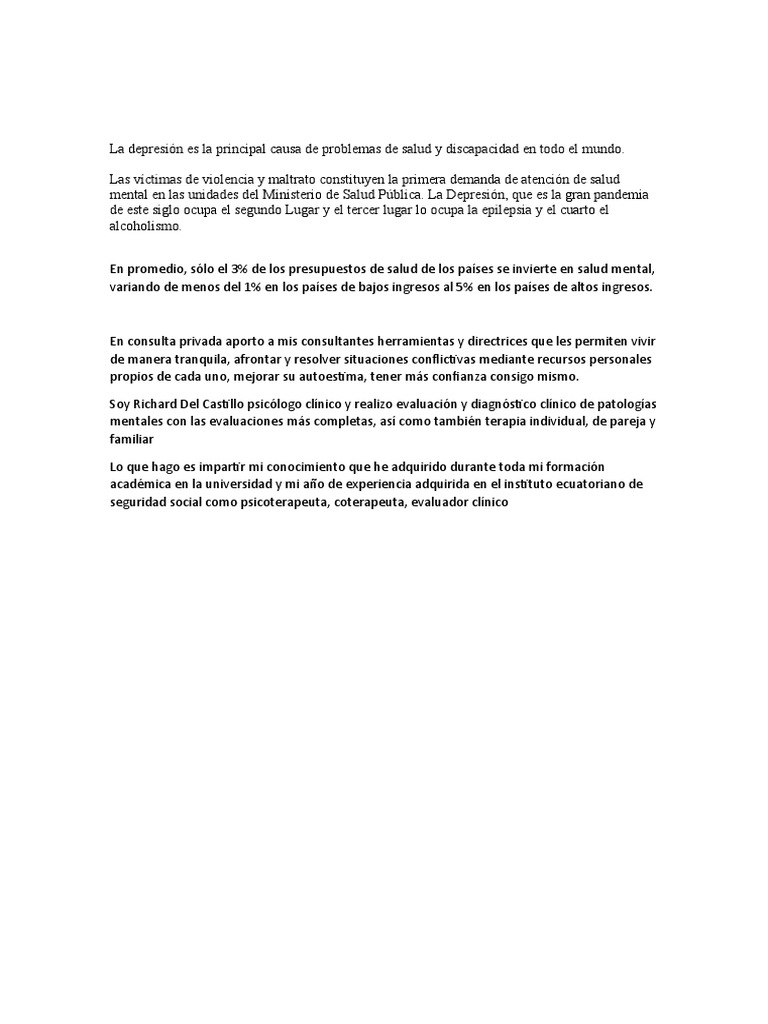 Soy Richard Del Castillo psicólogo clínico y realizo evaluación y diagnóstico clínico de patologías