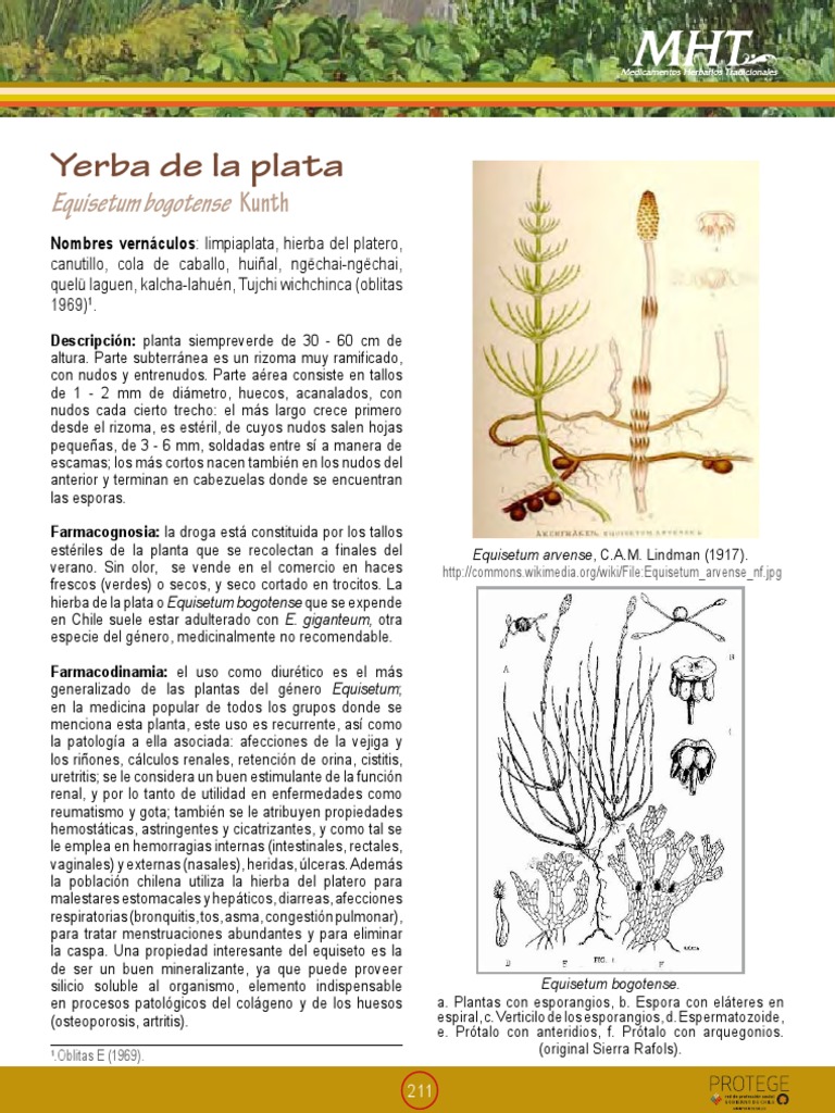 estériles de la planta que se recolectan a finales del Equisetum arvense, C.A.M. Lindman (1917).