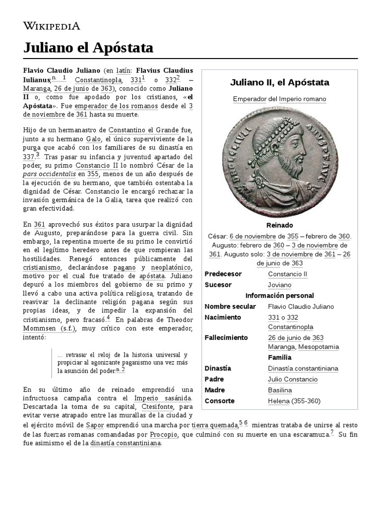 Wikiquote alberga frases célebres de o sobre Juliano el Apóstata.