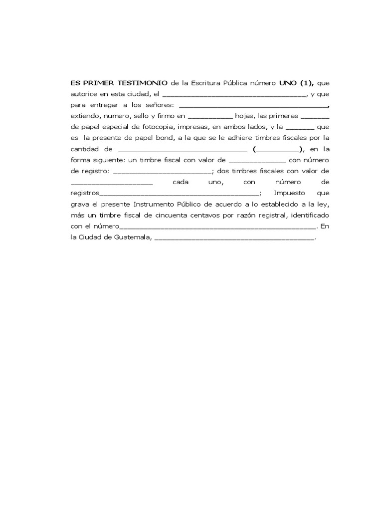 ES PRIMER TESTIMONIO de la Escritura Pública número UNO (1), que