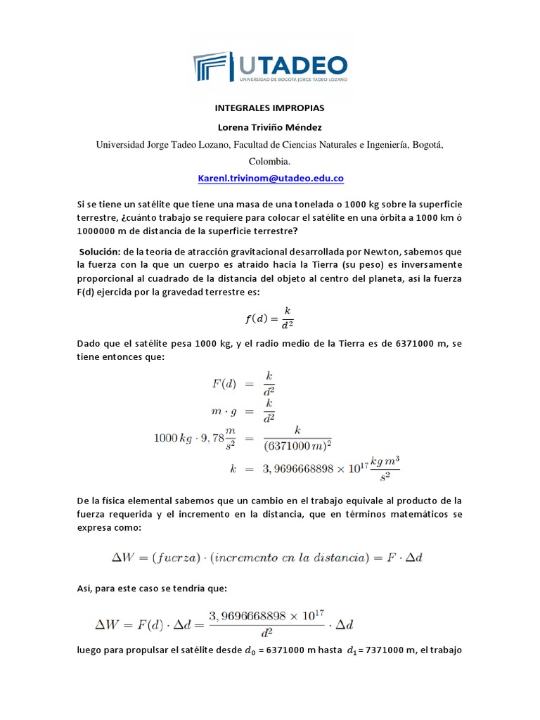 luego para propulsar el satélite desde 𝑑0 = 6371000 m hasta 𝑑1 = 7371000 m, el trabajo