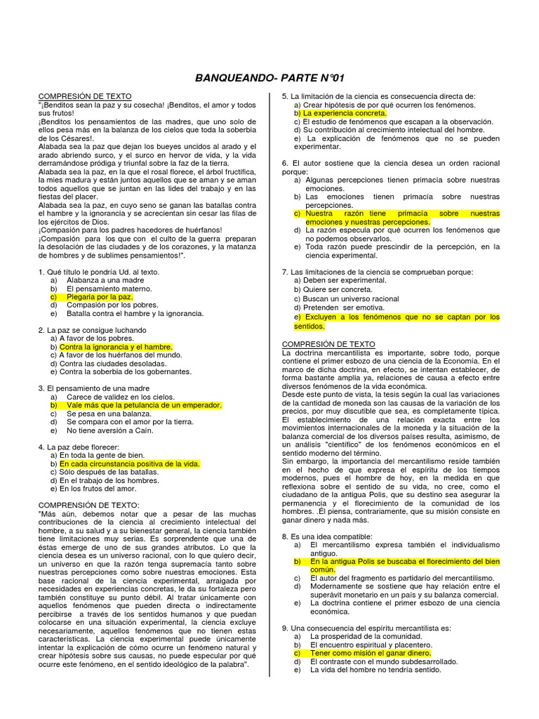 b) Contra la ignorancia y el hambre. COMPRESIÓN DE TEXTO