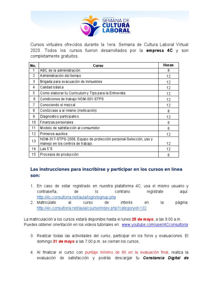 2020. Todos los cursos fueron desarrollados por la empresa 4C y son