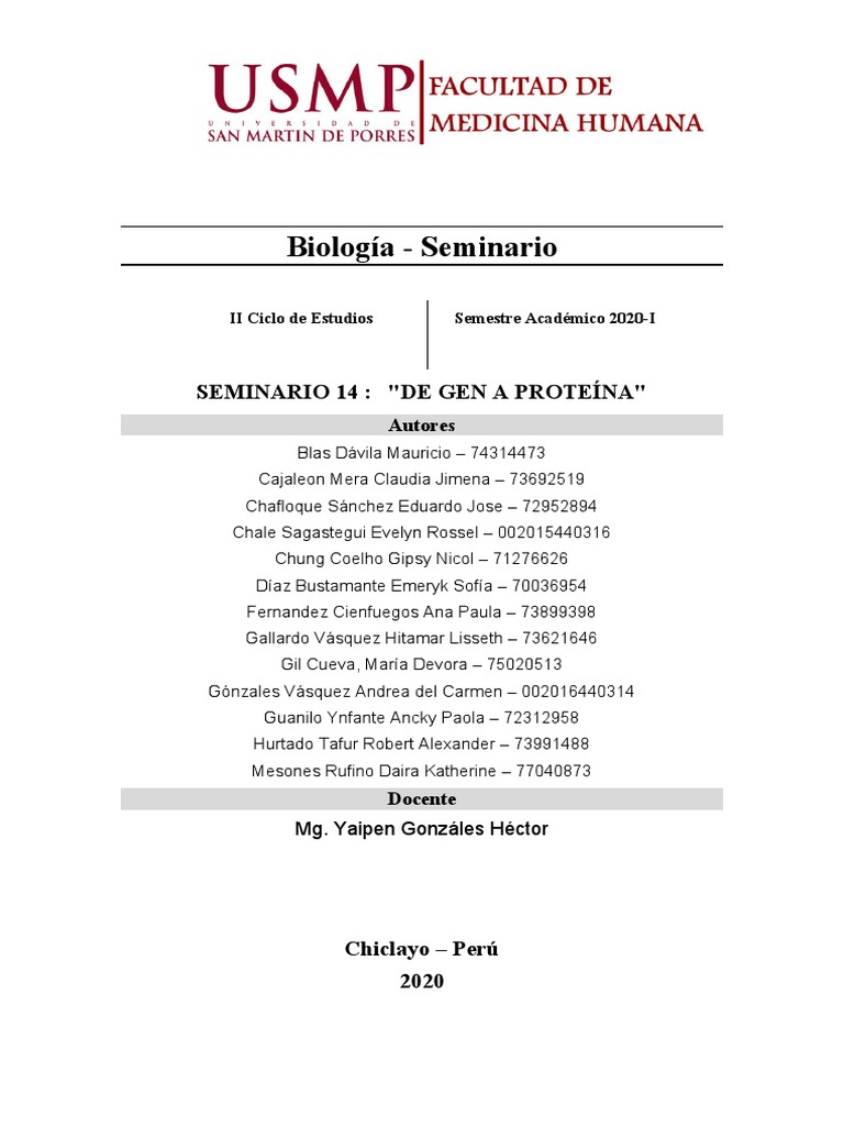 SEMINARIO 14 : "DE GEN A PROTEÍNA"