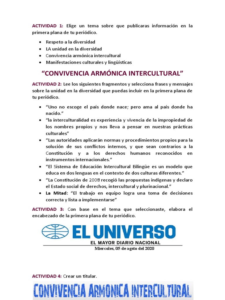 sobre la unidad en la diversidad que puedas incluir en la primera plana de